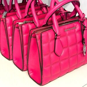 Michael Kors Small Quilted Sheila CZ Satchel Bag Vegan Material Dragonfruit Pink