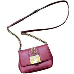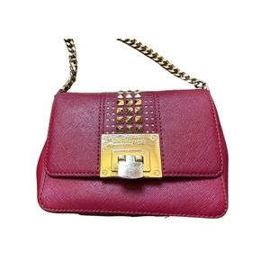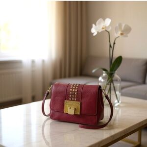 This mini purse is lightweight, stylish, and the perfect pop of color for any outfit. Crafted in crossgrain leather with gold-tone hardware, an adjustable strap (with partial chain detail), and signature studded accents. Compact but chic—perfect for day-to-night wear.