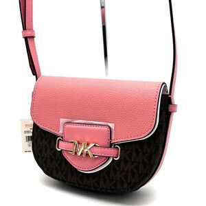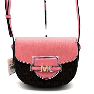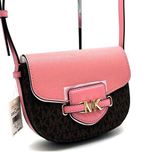 Michael Kors Small Reed Leather Saddle Crossbody Bag Brown/Pink (NWT)