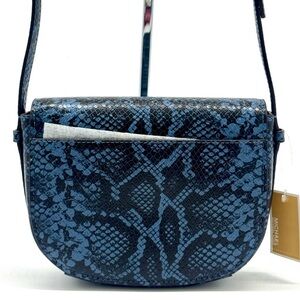 Michael Kors Small Reed Leather Saddle Crossbody Bag Denim Multi