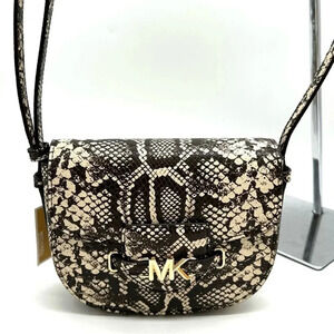 Michael Kors Reed Small Logo and Leather Nat/Black Snakeskin Saddle/ Crossbody Bag