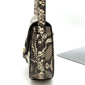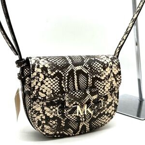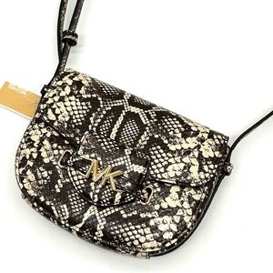 Michael Kors Reed Small Logo and Leather Nat/Black Snakeskin Saddle/ Crossbody Bag
