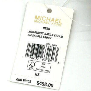 Michael Kors Reed Small Logo and Leather Nat/Black Snakeskin Saddle/ Crossbody Bag