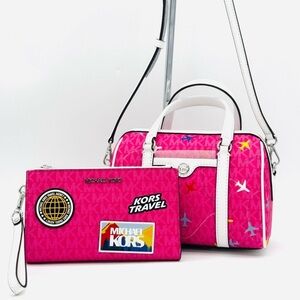 Michael Kors Small Travel Duffle Xbody Bag & Double Zip Wallet Matching Set