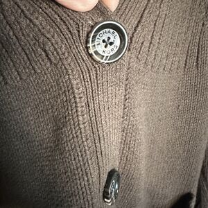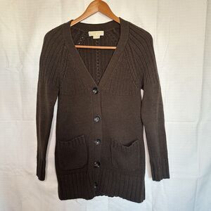 Michael Kors Small V Neck long brown cardigan with pockets. Condition is Pre-owned.