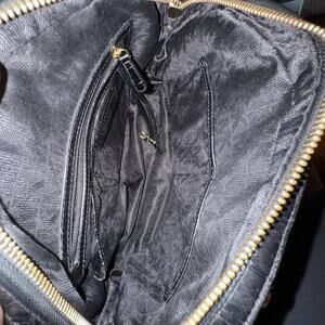 The Michael Kors Smythe Small Dome Cross Stich Satchel in Walnut Black is a stylish and trendy handbag designed for women. With a zip and magnetic closure, black handles, gold hardware, and a quilted leather exterior, this satchel exudes luxury and sophistication. The adjustable strap adds versatility, while the unique striped pattern and stitch accents give it a distinctive look. The bag features a charming accessory charm and a brown leather lining, making it a chic and practical choice for everyday use.