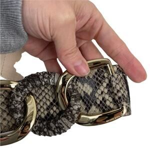 Michael Kors Snake Embossed Genuine Leather Belt Tan Gold Size M/L Style 555115