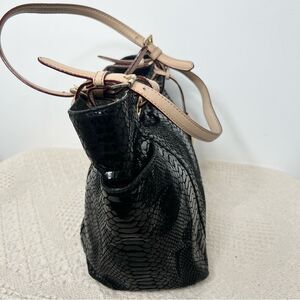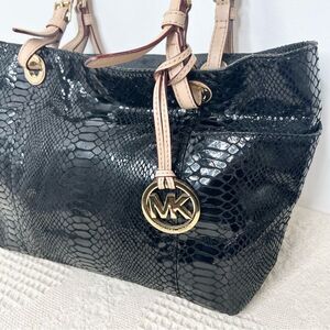 Michael Kors Snake Embossed Leather Jet Set Tote Shoulder Bag Black