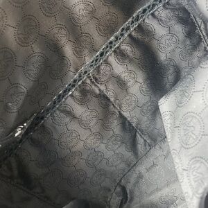 The Michael Kors Chain Snake embossed Tote Shoulder Bag/Cross Body Jet Set in Black is a stylish and versatile accessory for women. This large leather bag features a unique snake embossed exterior with a black handle and silver hardware accents. It is equipped with multiple features such as credit card slots, inner pockets, and a chain strap for added convenience. The bag is perfect for various occasions including travel, parties, casual outings, and formal events, making it a must-have addition to any wardrobe. The Michael Kors Jet Set Travel collection adds a touch of luxury and sophistication to your everyday look. It is a very spacious bag with several pockets to store everything including a large wallet and keep everything organized. It can be worn as a cross body, or you can remove the strap and wear it as a gorgeous handbag! It has the beautiful MK logo in the silver tone hardware on the clasp of one of the main pockets which has magnetic closure which is extremely convenient. Another large pocket above it is zip closure with a beautiful silver zipper. This purse would make a great gift for anyone looking for a stylish trendy new bag but still needs enough space for all their belongings. Lease let me know if you have any questions!