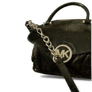 Michael Kors Snake Embossed Leather Shoulder Bag/Cross Body Jet Set BlacK