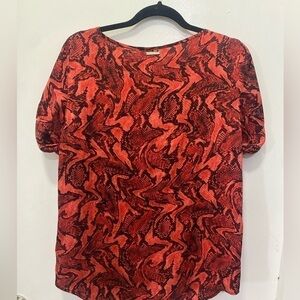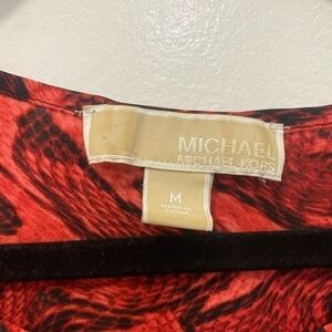 Red vibrant snake print top. Short sleeves with gold MK logo buttons. Back neckline has MK logo plaque. Lightweight.