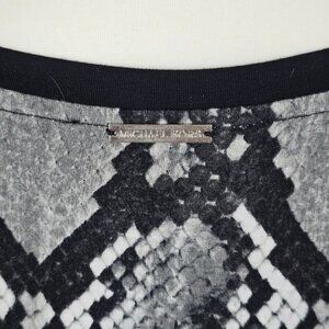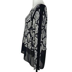 Michael Kors Snake Print Sheer Chiffon Trim Tunic Long Sleeve High Low Blck/Gray