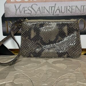 Elegant snake print design. Features iconic logo detail. Ideal for versatile styling.