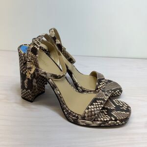 Michael Kors Snake Skin Print Block Heel Ankle Strap Sandals Size 6.5M