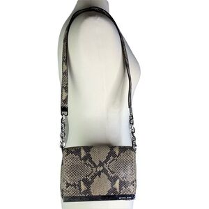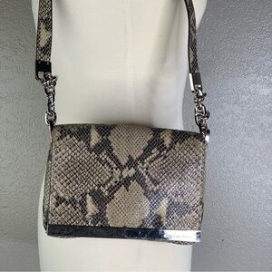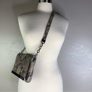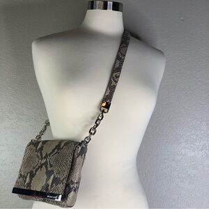 Michael Kors Snakeskin Crossbody Handbag Chunky Silver Chain Accent on Strap