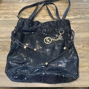 Michael Kors Snakeskin Leather Navy Shoulder Bag. Gold Tone Hardware. Mint.
