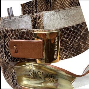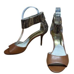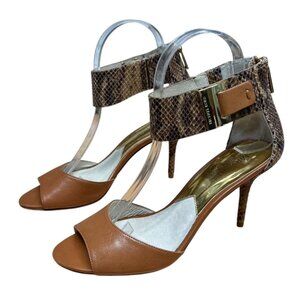 Michael Kors Snakeskin & Leather Tan Peep Toe Stiletto Ankle Strap Size 6.5