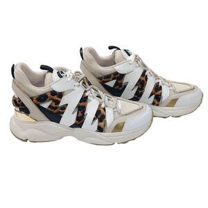 Michael Kors Sneakers Womens Sz 10 Ecru Hero Trainer Animal Print Small Air Mesh