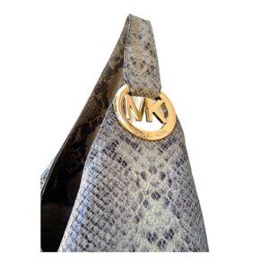 Michael Kors Soft Grey Snakeskin Fulton Bag w/Gold Logo Hardware