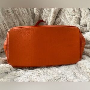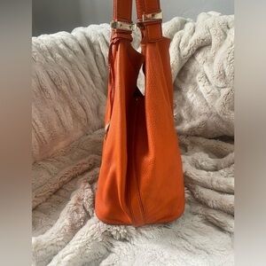 Michael Kors super soft, orange leather tote bag with gold tone hardware. The leather is very supple and the bag is lightweight. It’s in very good preowned condition. There is a little bit of wear on the bottom corners… Please see photos.