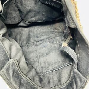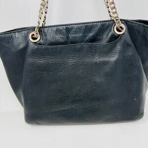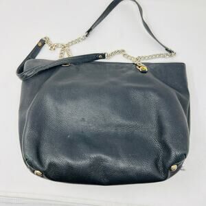 Michael Kors Soft Pebble Leather Shoulder Bag Tote Zip Top Black Gold