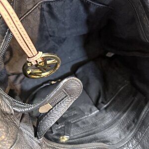 Michael Kors Soft Pebbled Leather Purse Satchel Handbag Black Tan Handle