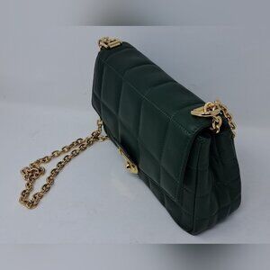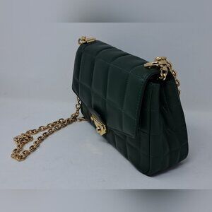 Michael Kors Soho Shoulder Bag Quilted Green Leather Gold Chain Convertible