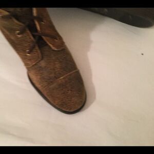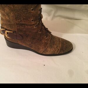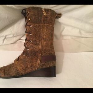 Good preowned condition. Michael Kors Speckled Leather Suede Lace up Wedge boots Size 8 EUC