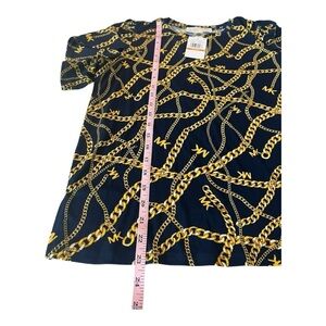 Michael Kors Split Neck Navy Gold Chain Top with Tulip Sleeve Size SP Casual