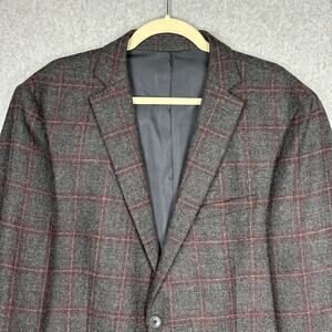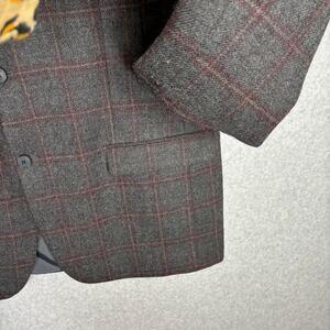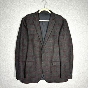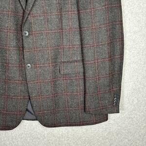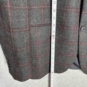 Michael Kors Sport Coat Blazer 44L Gray Maroon Burgundy Plaid Windowpane Wool Double Vent 2 Button Preppy Academia