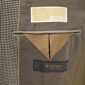 Michael Kors Beige Sport Coat Size 42R Men's Silk Wool Houndstooth Jacket Azzurro