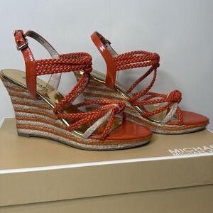 Michael Kors | Spring Orange Summer Wedge Knotted Braided Strappy Sandals 6.5 M