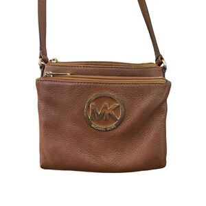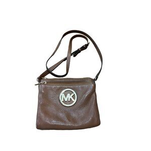 Michael Kors Square Leather Crossbody Purse Brown Extra Zipper Pockets ID Cards