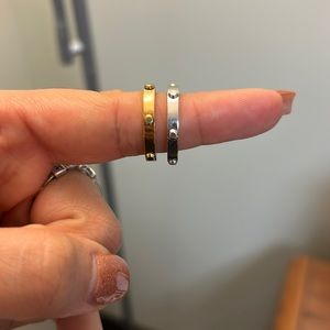 Include two stackable rings in EXCELLENT condition! A few minor scratches from normal wear but overall barely noticeable.