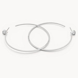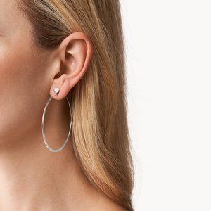 Michael Kors Stainless Steel Hoop Earring Silver-tone Heart Stud Crystal