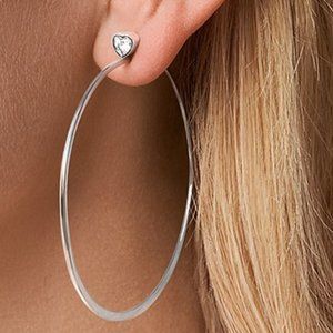 PERFECT SIZE HOOPS, HYPOALLERGENIC STAINLESS STEEL, SPARKLY CRYSTAL HEART SHAPED STUD.