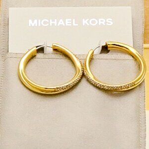 Michael Kors Stainless Steel and Pavé Crystal Gold Hoop Earrings for Women