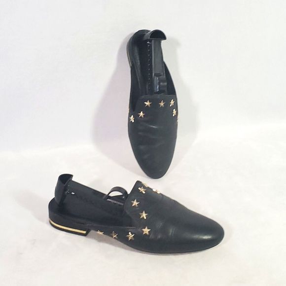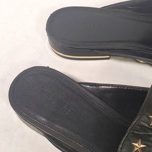 Michael Kors Star NATASHA Slide-On Mules Womens Sz 7.5 Black Leather Star Studs