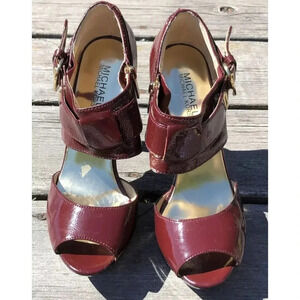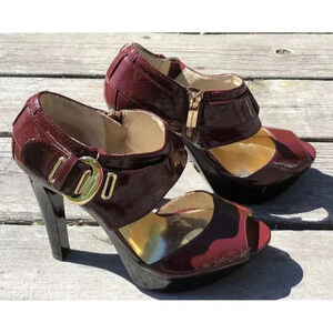 Michael Kors Stilletto Side Zipper Buckle Shoes Pumps Heels Burgundy Wine Sz 38