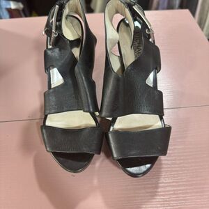 Elevate your shoe game with these Michael Kors strappy stiletto heels. The sleek black leather upper material pairs perfectly with any outfit, while the stiletto heel adds a touch of sophistication and elegance. The belted design ensures a comfortable and secure fit, making these heels perfect for any occasion. Whether you're dressing up for a night out or adding a touch of glam to your work wardrobe, these Michael Kors heels are a must-have addition to your shoe collection.