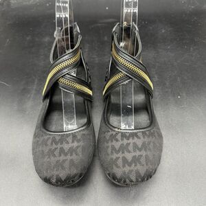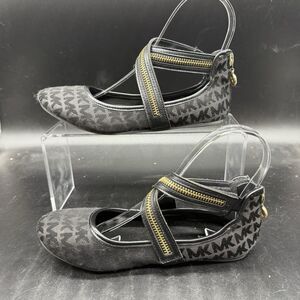 Michael Kors Strappy Zaza Ballet Flats Girls Size 2 Black Logo Designer