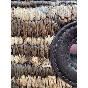 Michael Kors Straw Rosalie Leather Trim Small Crossbody Clutch Bag Purse