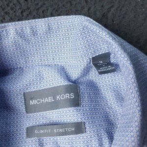 Michael Kors Stretch Slim Fit Button Shirt Mens L Large Long Sleeve Blue