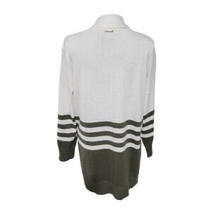 Michael Kors Striped Open Front Longline Cardigan Sweater XL White Olive Green