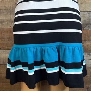 Michael Kors Striped Sleeveless Dress Ruffle Hem White Black Blue Size 4