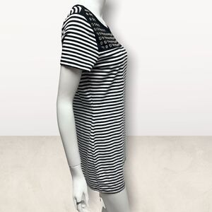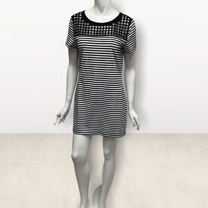 T-shirt Dress Black & White Striped Grommet Detail Pull On Style