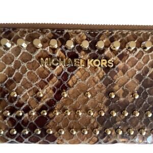 Michael Kors Studded Snakeskin Zip Around Wallet