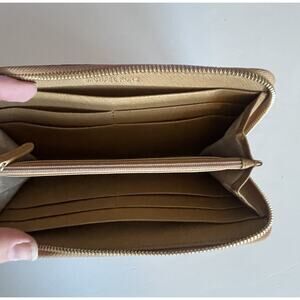 Michael Kors Studded Snakeskin Zip Around Wallet Womens Tan Gold