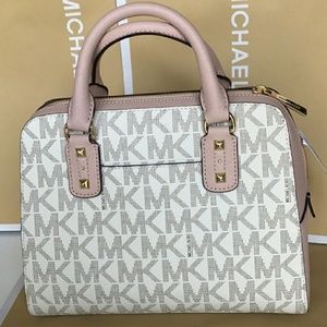 Michael Kors • Studded Vanilla/Ballet Pink Rose Gold Satchel Purse + Wallet Set