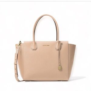 Side gussets give this MICHAEL Michael Kors Studio satchel its sophisticated shape, while bonded pebbled leather and understated luggage lock hardware add a rich finish.